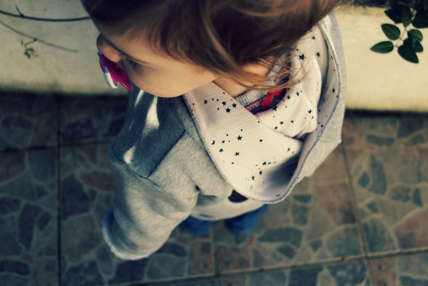 I made size 18 months that I knew it's was going to be roomy on Sara, at this point they grow too fast so this is an advantage. I did not make changes to the original pattern and I used a wonderful sweatshirt knit that I bought on FDT and for the hood a very thin knit but with a super soft touch from the Sweet Mercerie. It is a very good pattern and with super complete instructions, once again excelent quality. You can buy it with 25% off in the Up Craft Club for the next two days so don't miss the chance!