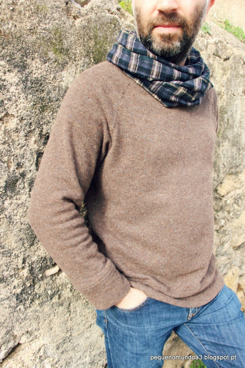 Desta vez, repeti as calças mas modifiquei os bolsos, usei as instruções dos calções para acrescentar uns bolsos à frente. Usei um pedaço um tecido de lã que tinha quase desde que comecei a coser (há uns 2 anos) e por isso não me lembro onde comprei e uma cambraia linda em cinza que comprei na Sweet Mercerie.