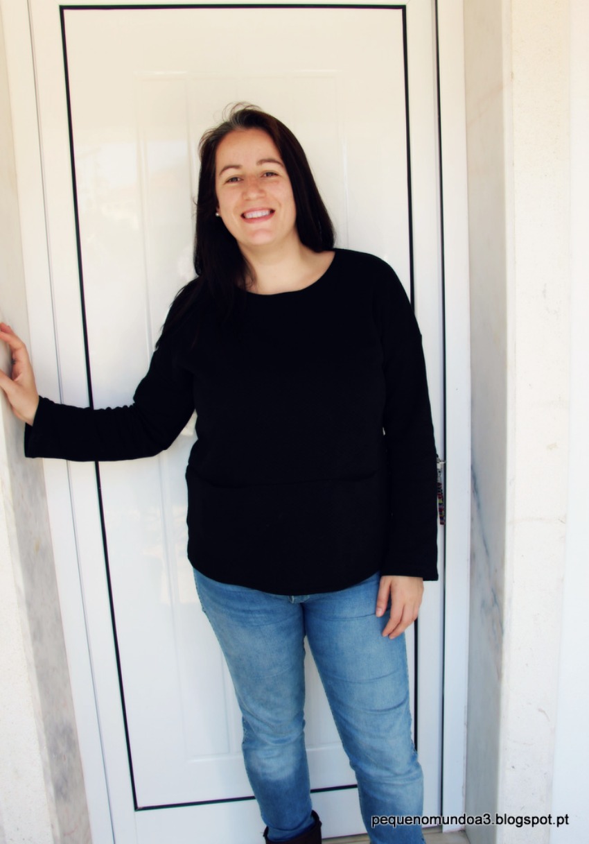 Bento Tee foi uma dessas muito boas experiências. Tem linhas direitas, dois pequenos bolsos (se fizermos versão com bolsos - já tenho uma cortada sem bolsos em malha, depois mostro se tiver coragem) e, depois de cortada, faz-se num instante! As instruções são detalhadas e muito fáceis de seguir com bastantes hipóteses para se brincar com o molde (ou ser criativa, como eu gosto de lhe chamar ;-)). Adorei! Vejo bastantes Bento Tees no meu futuro, verão camisola e verão tee ou top no verão! A primeira vez que vi a Bento e que achei, é pá que gira!, foi no blogue da Rita e da Fatima, o Conversas de Hermanas, ora espreitem aqui e apaixonem-se pela versão da Rita.