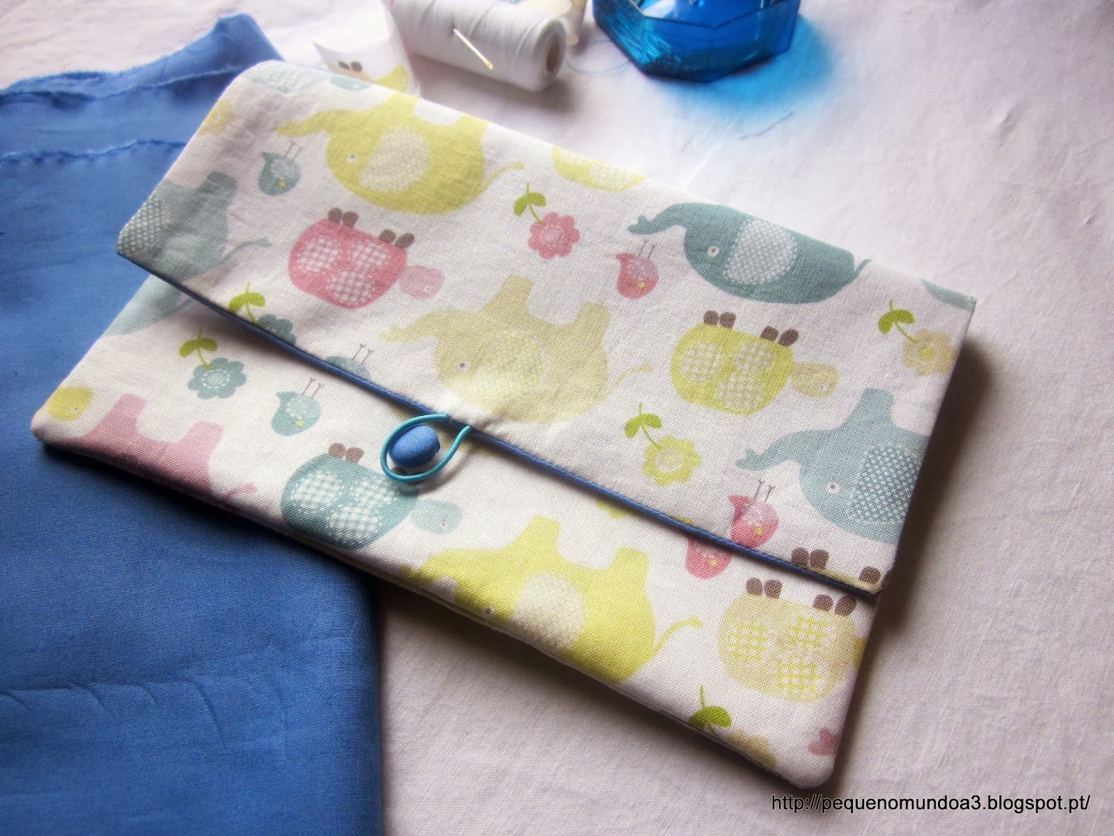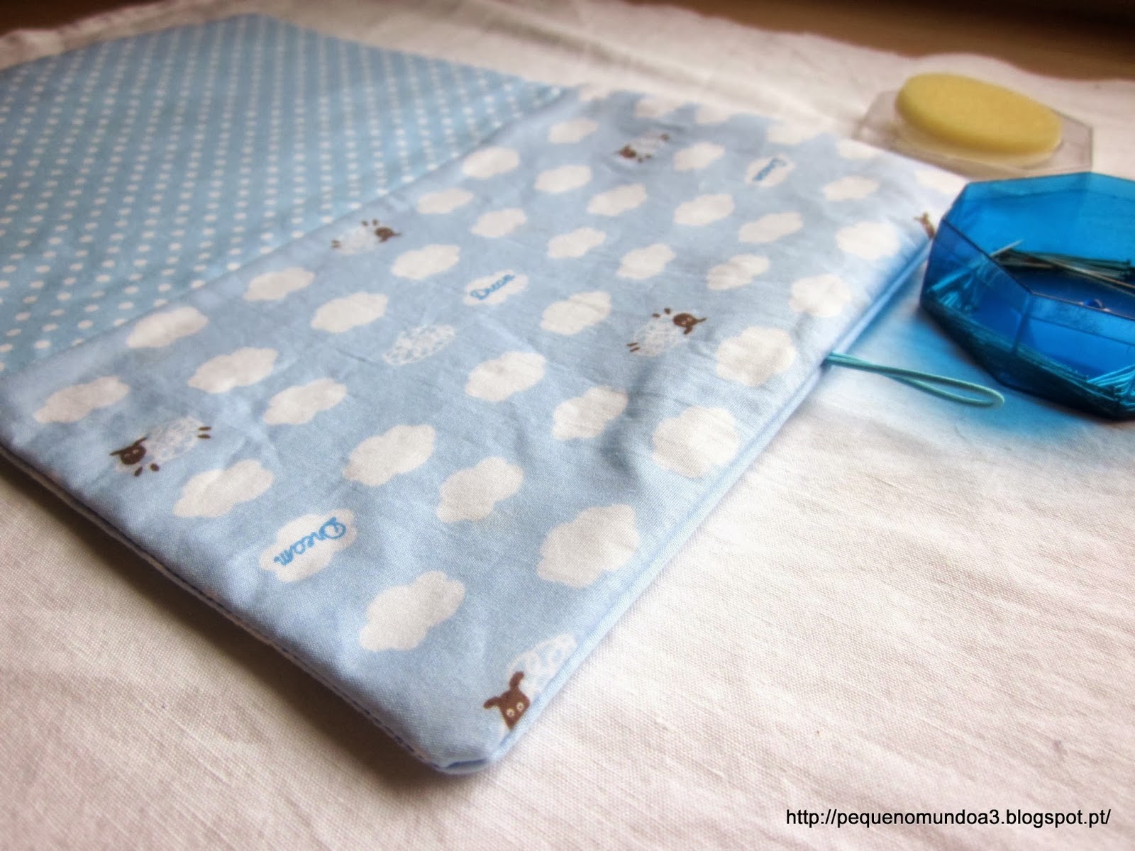 Fiz a minha primeira mala e fiquei apaixonada pelo resultado final. Usei um tecido velho e sem grande piada porque a intenção era fazer uma bolsa para os retalhos de tecido que se acumulam num saco de papel em cima da mesa mas vou repetir a experiência em breve com um tecido maravilhoso cheio de princesas e brilhos para uma menina linda que adora aquilo que as meninas de 8 anos adoram... Para quem não sabe e generalizando como é claro, estou a falar de cor-de-rosa, princesas, tule e brilhantes!