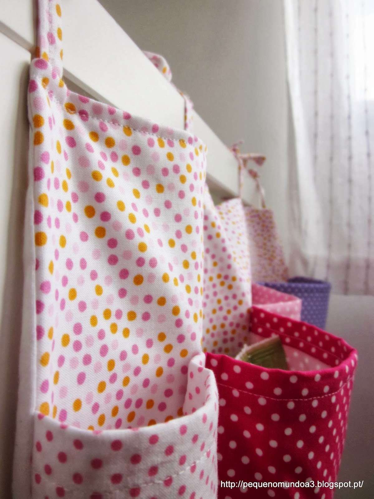 Como se chama isto? Qual é o nome para este acessório? Uma bolsa, um saco? Andei não sei quanto tempo a pensar que não gostava da solução que tínhamos arranjado para manter por perto as compressas e os cremes da Miss Caracolinhos. Finalmente consegui algo bonito e simples mas que ficou a condizer com o quarto e connosco... e o melhor é que fui eu que fiz!