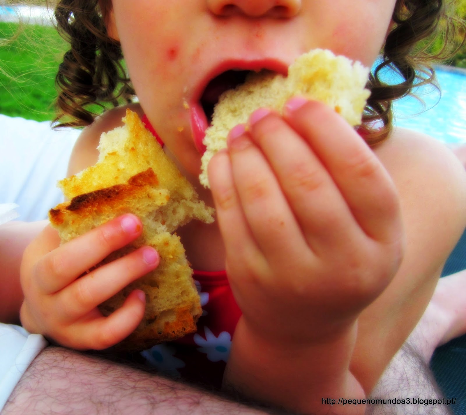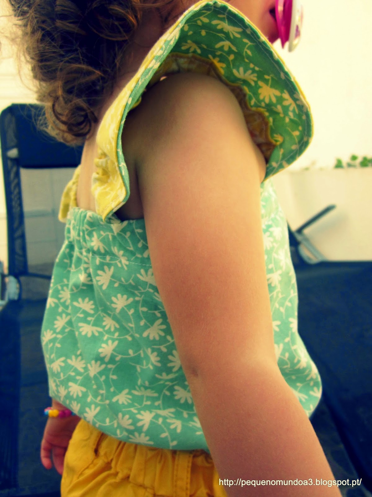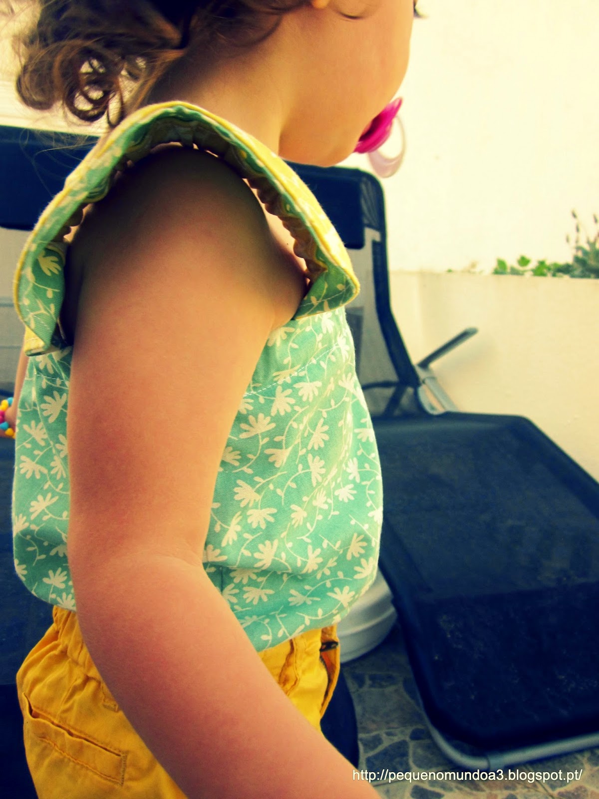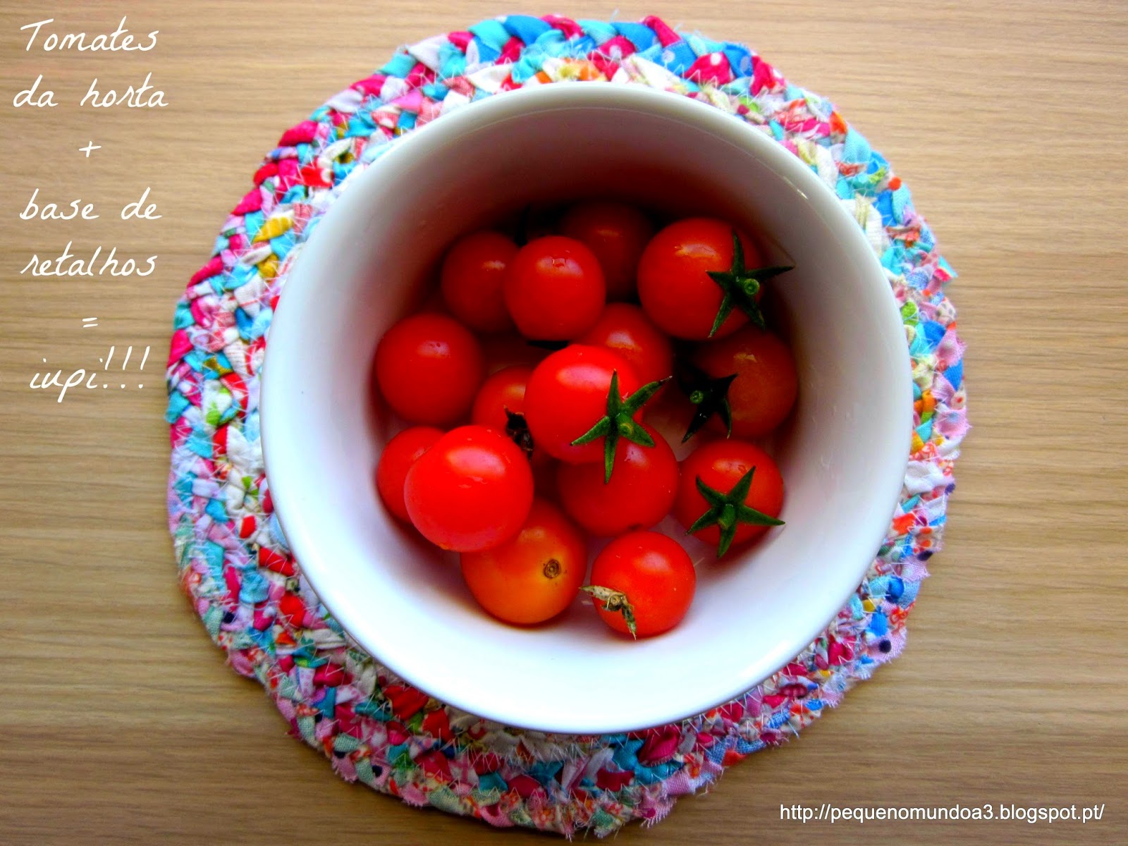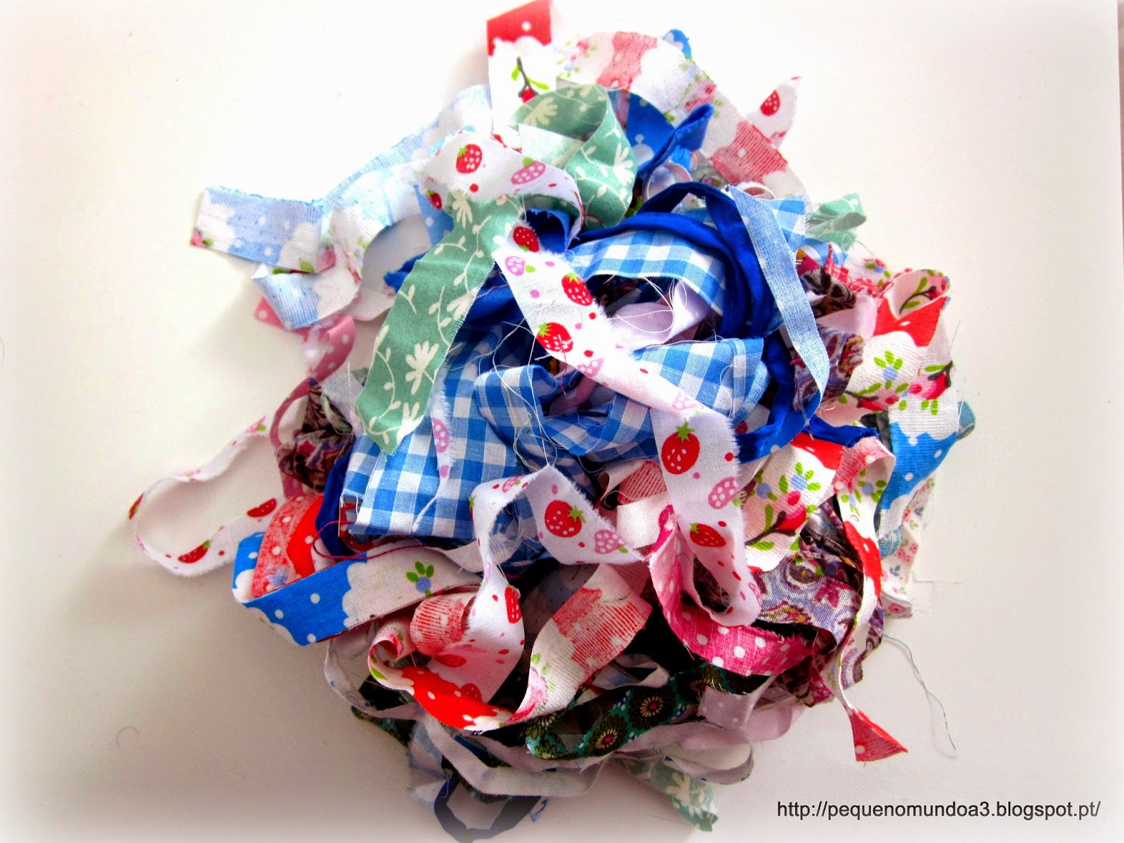 Dica, usar pedaços com mais ou menos a mesma largura para ficar com um aspecto circular mais uniforme. No primeiro que fiz, usei no final umas tiras bem mais finas para o final e acabou por ficar menos bem. A minha piolha gostou tanto que a queria para si portanto, fiz mais uma pequenina, só para ela... (última imagem)