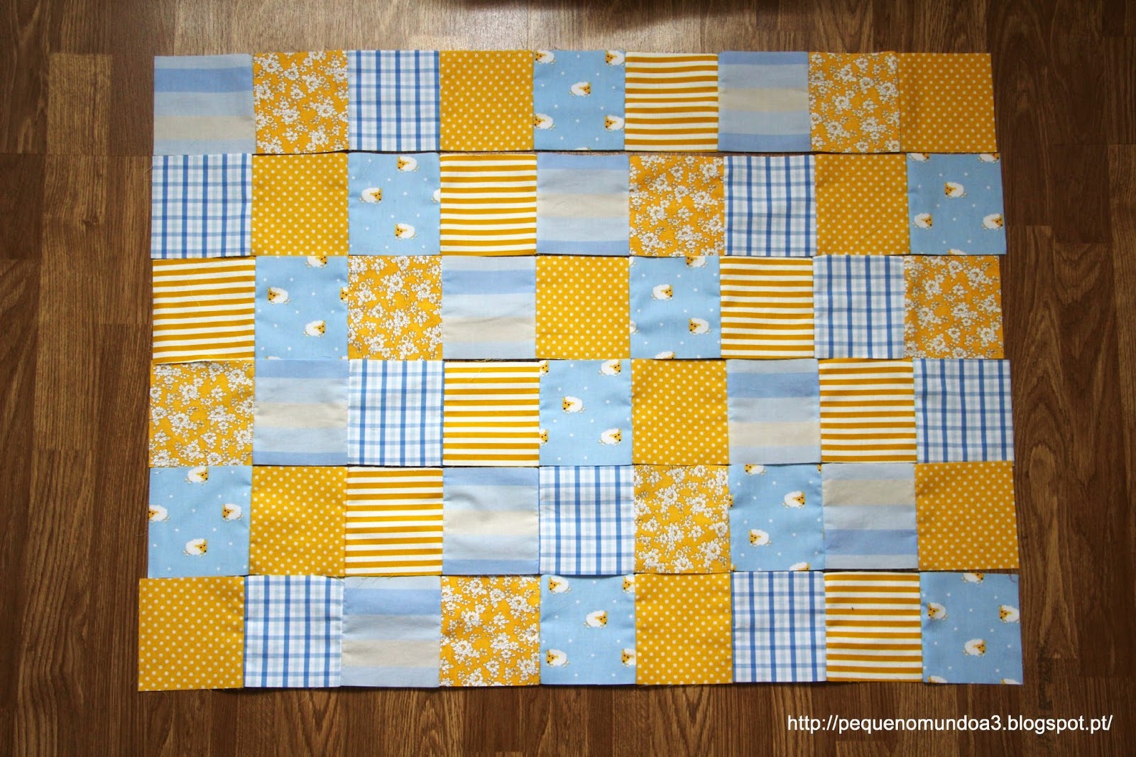 Ele chegou por correio no dia 26 de Dezembro e os tecidos que o compõem são mil vezes mais bonitos ao vivo. O meu coração bateu palminhas dentro do peito. Comecei só esta semana a construir o meu quilt mas, infelizmente, isto anda a passo de caracol por aqui. Barriguda, com uma filhota intermitentemente doente e com muitas outras coisas que se metem pelo meio, o quilt vai ficando à espera. Mas, tenho que admitir que até sinto comichão cada vez que o vejo esticado em cima da cama, quero tanto acabá-lo que nem imaginam. Tem sido um processo fácil, as instruções que acompanham o quilt são bem detalhadas e fáceis de perceber até para as menos providas de neurónios, entre as quais me incluo neste momento (um bebé deixa-nos assim a modos que baralhadas de vez em quando).
