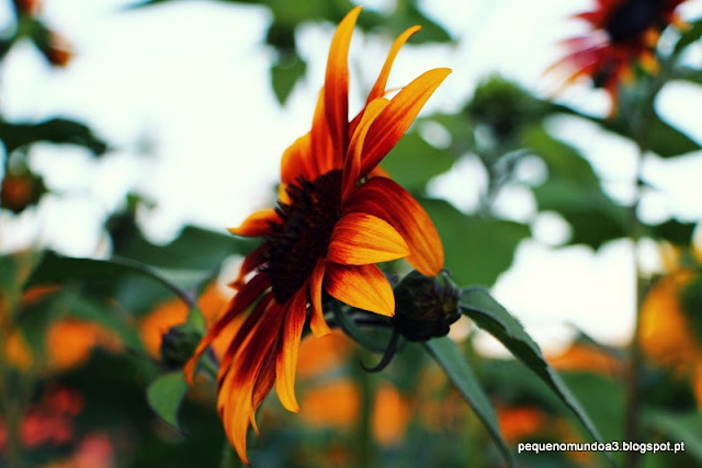 Se, há um ano ou dois, me perguntassem qual era a minha cor favorita, a resposta seria imediata. Hoje, não sei bem dizer se é o verde da árvores que vejo da janela enquanto escrevo isto, se o branco da camomila que cresce no meu jardim, se o amarelo destes girassóis, se o vermelho dos morangos ou o laranja das nêsperas, o lilás da lavanda ou o rosa das hortênsias mas sei que sou perdida pelo azul do céu.