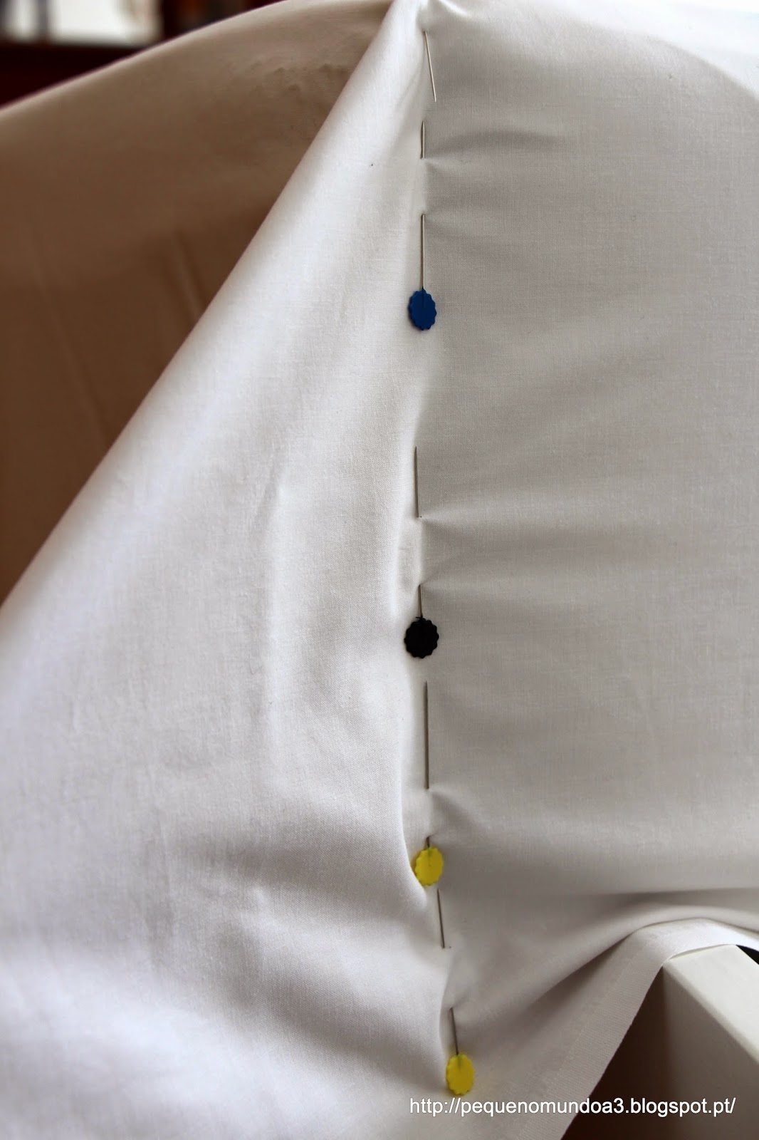 Depois, com os alfinetes marquei onde ia coser cada canto.