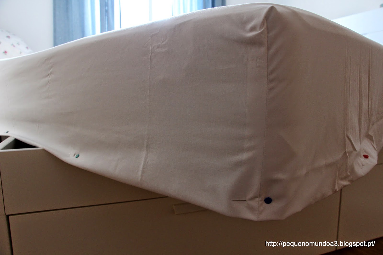 Ofereceram-me uns quantos lençóis literalmente gigantes para a minha cama de 140 cm por 200 cm, mas como eu gosto de lençóis bem esticados estes tinham que levar uma volta...