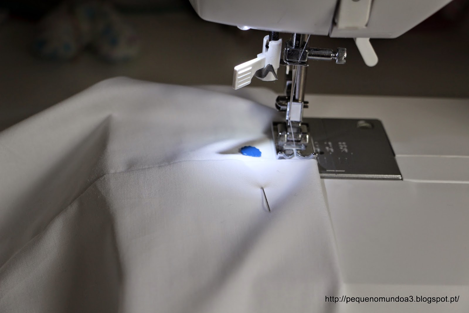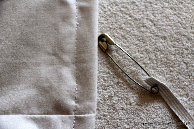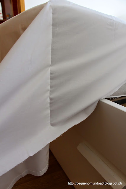 Foi ai que se acendeu uma luzinha, fui à Internet e achei um tutorial fantástico que mostra como fazer um lençol ajustável. Apesar de ser bastante explicito eu achei que, mesmo assim, tinha passos demais, portanto, inventei um bocadinho.