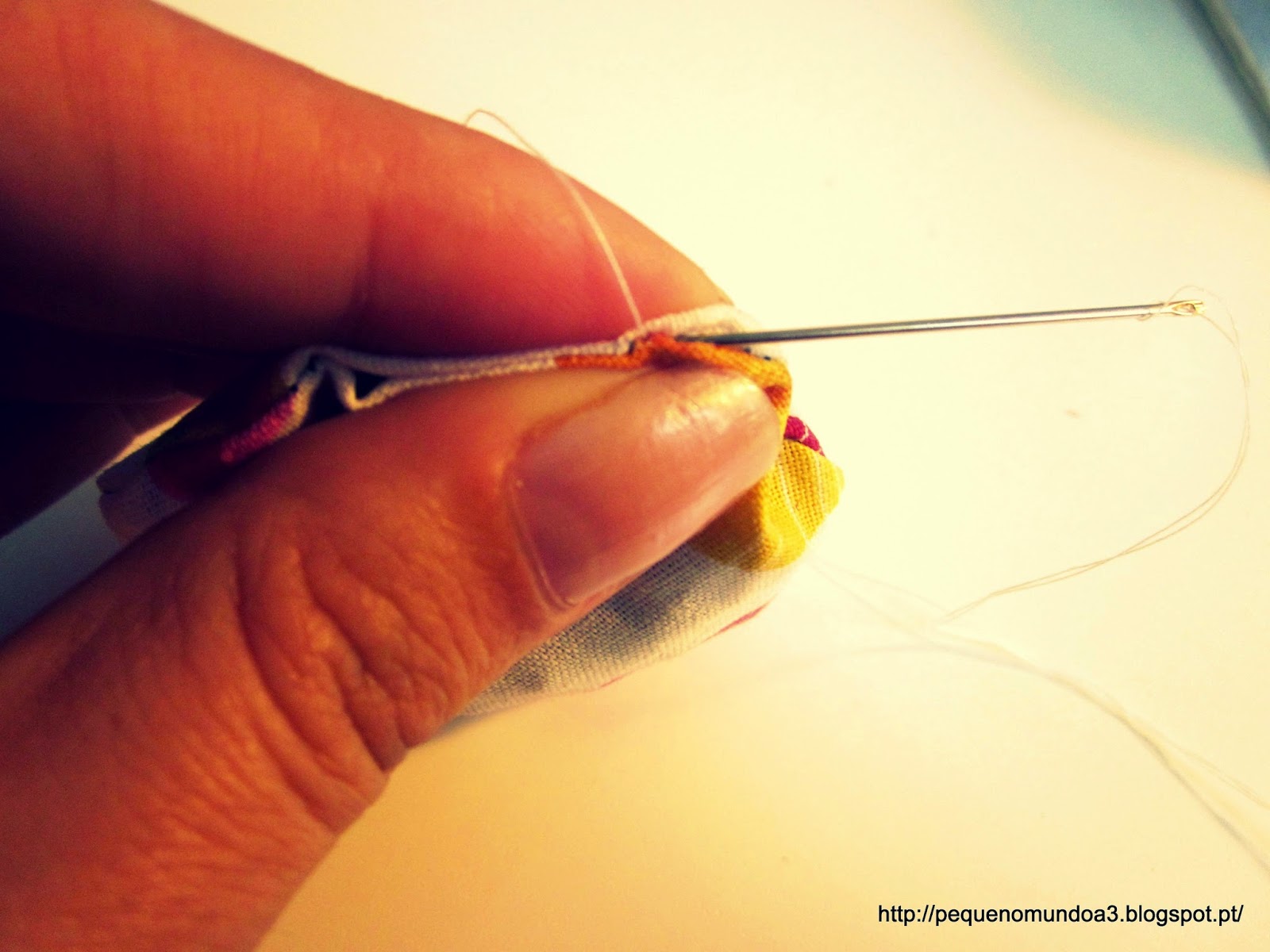 Não se esqueçam de deixar uma abertura para passarem o elástico! Por favor não façam como eu e não deixem uma abertura porque estão ansiosas por chegar ao fim...